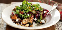 Take 2 cloves of garlic, 1 red onion, 1 celeriac,2 carrots, 2 beetroot, handful of chopped walnuts, a handful of feta cheese, 2 table spoons of olive oil, balsamic vinegar, 1 tea spoon of Dijon Mustard, chopped parsley, squeeze of lemon juice.